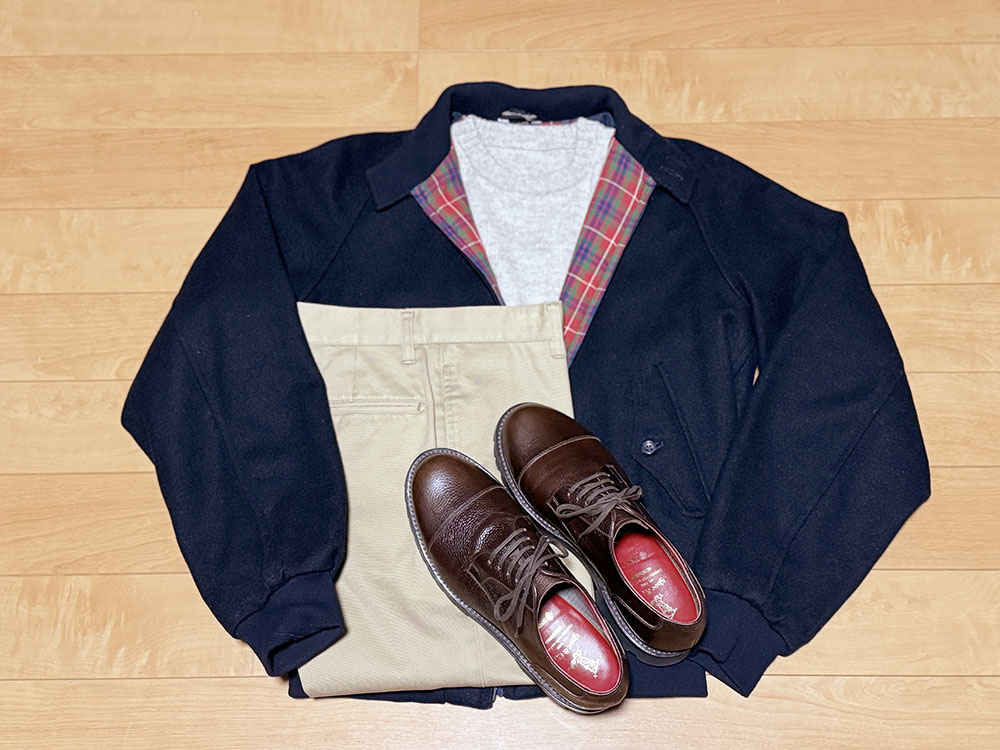 今回は、私が所有する 現行モデル(タン/サイズ36) と 旧モデル(ネイビーのウール/サイズ不明だが着用感は38相当) を比較しながら、それぞれの魅力をレビューしていきます。
