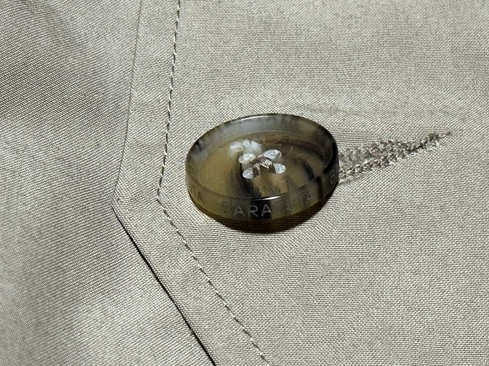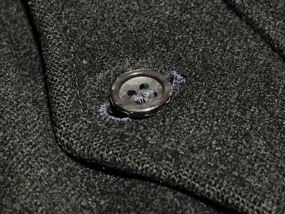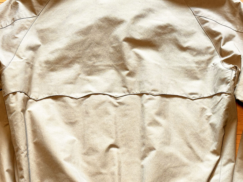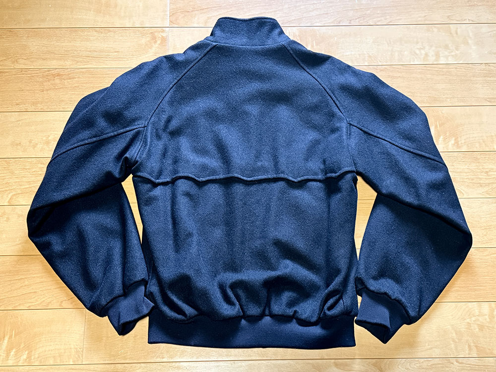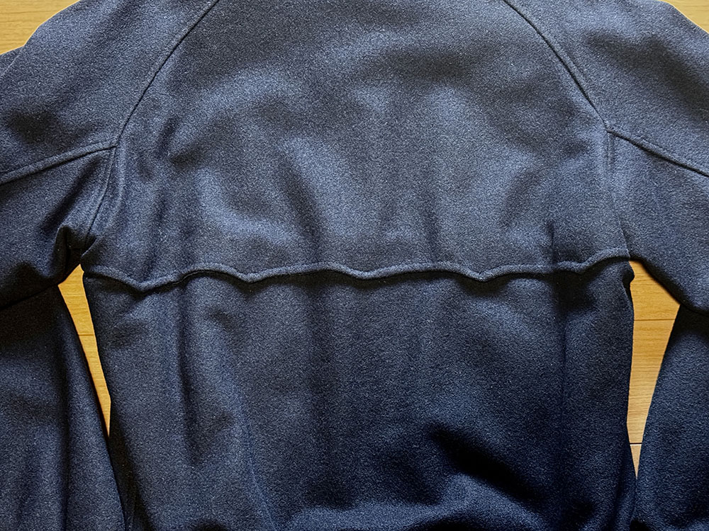 やや大きめでクラシックな雰囲気。表地はウール素材で重厚感あり。アンブレラヨークのステッチ幅は、素材が厚い分広め。