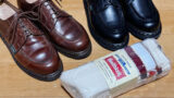 僕の個体は現行より柔らかく、馴染みが早いタイプ。履き皺は細かく入り、履き込みで深いツヤが出てきます。